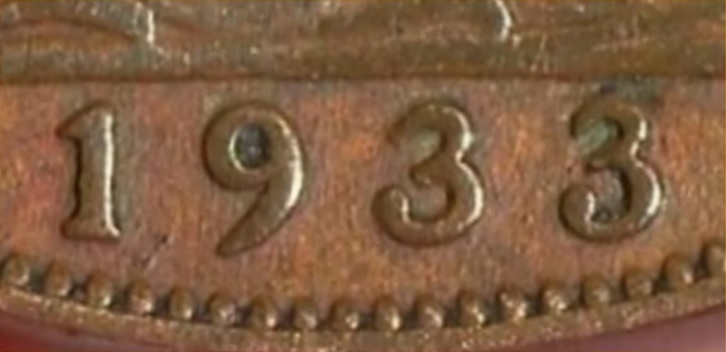 1933 Penny (Antiques Roadshow reverse) – the last digit of the date of this coin had been altered, i.e. one can see the bottom half of the last “3” is a different shape to the previous “3”