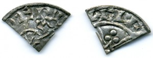 The first English pennies (or starlings) were cut in half (for halfpennies) or in four (originally known as ‘fourthings’, later corrupted to farthings). The old ‘long cross’ design of these silver pennies made this task easy and fragmented medieval pennies are very collectable.