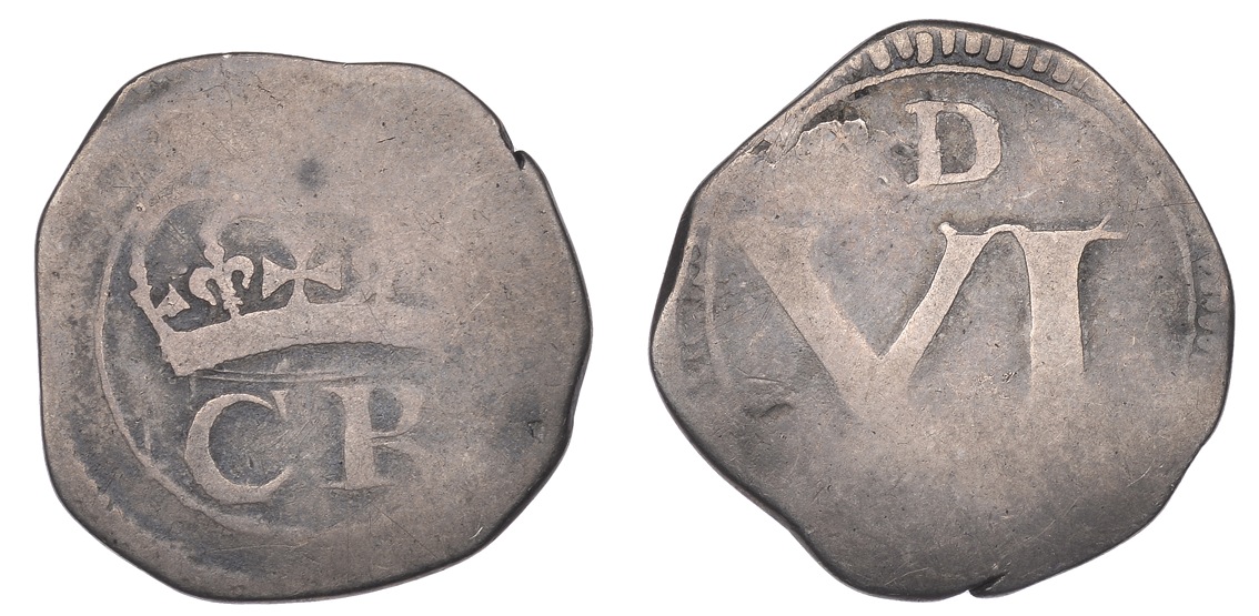 The 1642 ‘Lords Justices’ issues were followed in 1643 by a larger (fourth) emergency issue of better made, but still crude, silver coins. These are collectively known as ‘Ormonde Money’ since they were issued by the Lord Justice, the Earl of Ormonde (James Butler) some time between 1643-1644.