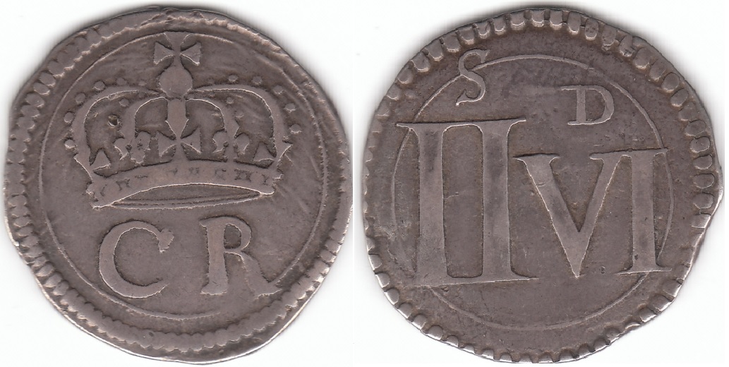 - rev. VId (denoting 6 pence) in double circle