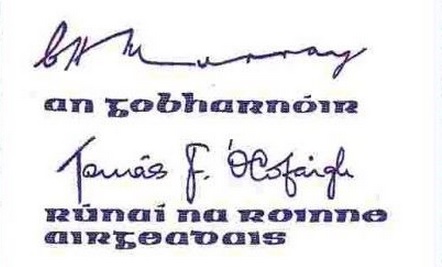 - Signatures = Tomás F. Ó Cofaigh & Maurice Doyle