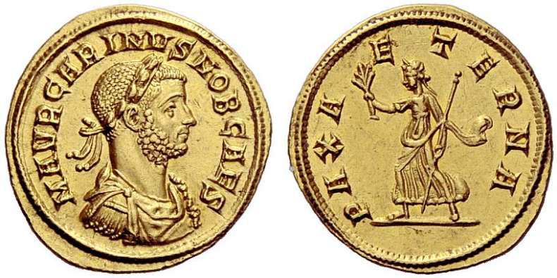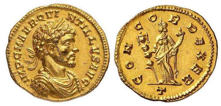 - He appears with the titledeus et dominus natus (“God and born ruler”) on some of his coins, a style also later adopted by Diocletian.