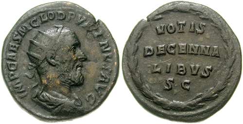 When Claudius died, his brother Quintillus seized power with support of the Senate. With an act typical of the Crisis of the Third Century, the army refused to recognize the new Emperor, preferring to support one of its own commanders: Aurelian was proclaimed emperor in September 270 by the legions in Sirmium. Aurelian defeated Quintillus’ troops, and was recognized as Emperor by the Senate after Quintillus’ death. The claim that Aurelian was chosen by Claudius on his death bed can be dismissed as propaganda; later, probably in 272, Aurelian put his own dies imperii the day of Claudius’ death, thus implicitly considering Quintillus a usurper.