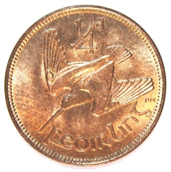 2018 Market Values Irish Free State (Saorstát Éireann) YEAR VF 20 XF40 AU50 MS61 RB PF66 R Mintage Fine Very Fine Ex. Fine Uncirculated Proof (FDC) 1928 300,000 €2.25 €4.00 €7.00 €14.00 €30.00 1930 288,000 €3.50 €6.00 €15.00 €25.00 1931 192,000 €4.00 €7.50 €20.00 €35.00 €500.00 1932 192,000 €4.00 €8.00 €20.00 €35.00 1933 480,000 … Continue reading O’Brien Coin Price Guide: Irish Pre-Decimal Farthing
