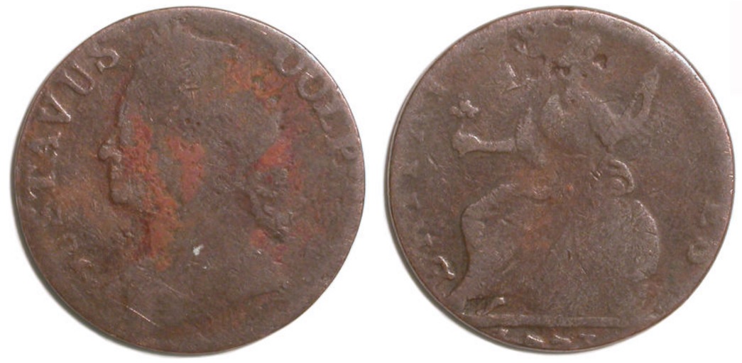 As the laws began to be enforced, these unofficial tokens and evasion halfpennies made their way to the American Colonies where the shortage of copper coins allowed these ‘under weight’ imports to circulate.